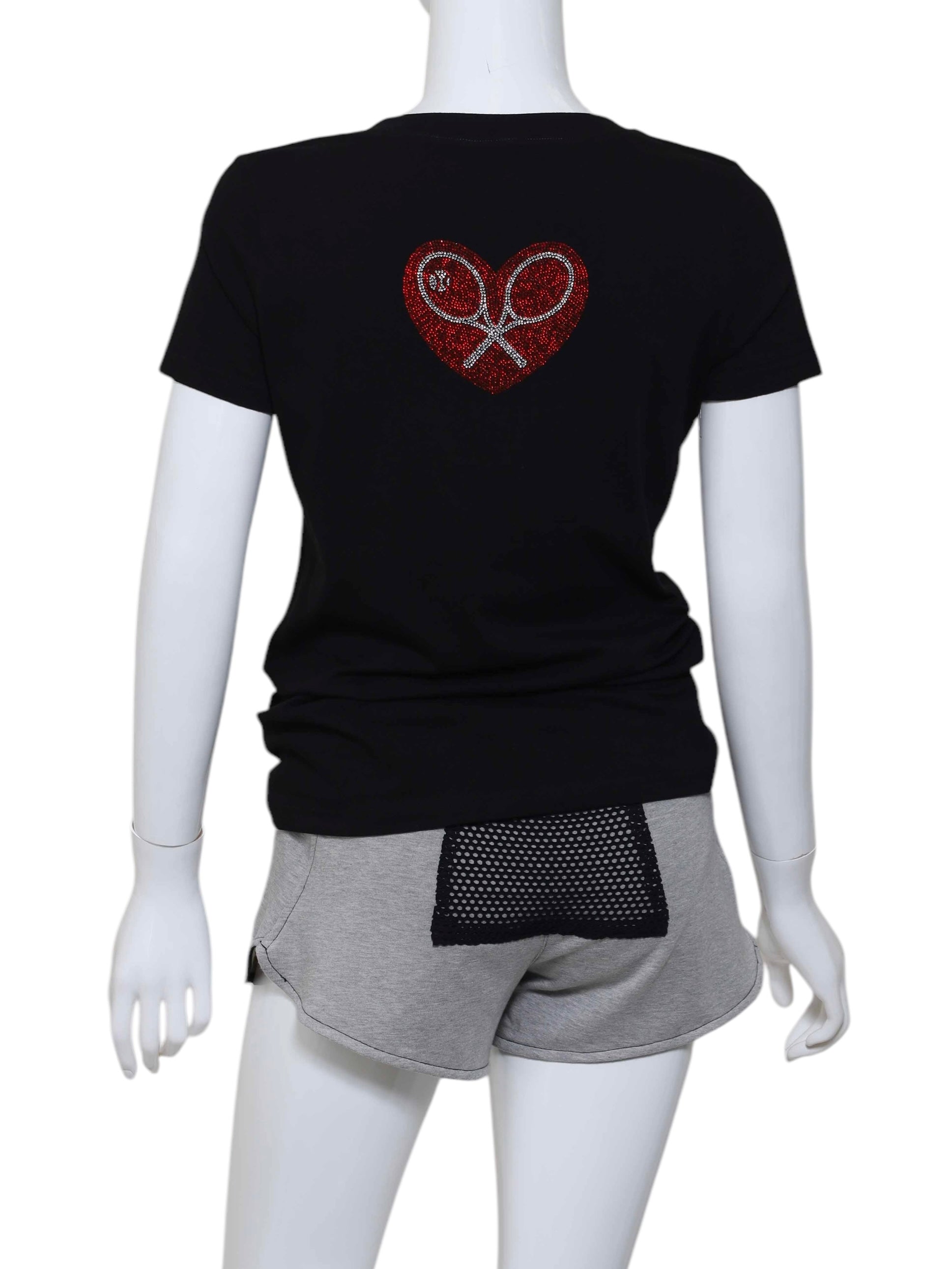Add a little sparkle to you day or night with our Love Bedazzled Heart T-shirt. Jewels will with stand wash after wash. XS is 34" chest and 24" length. S is 36" chest and 25" length, M is 38" chest 26" length.