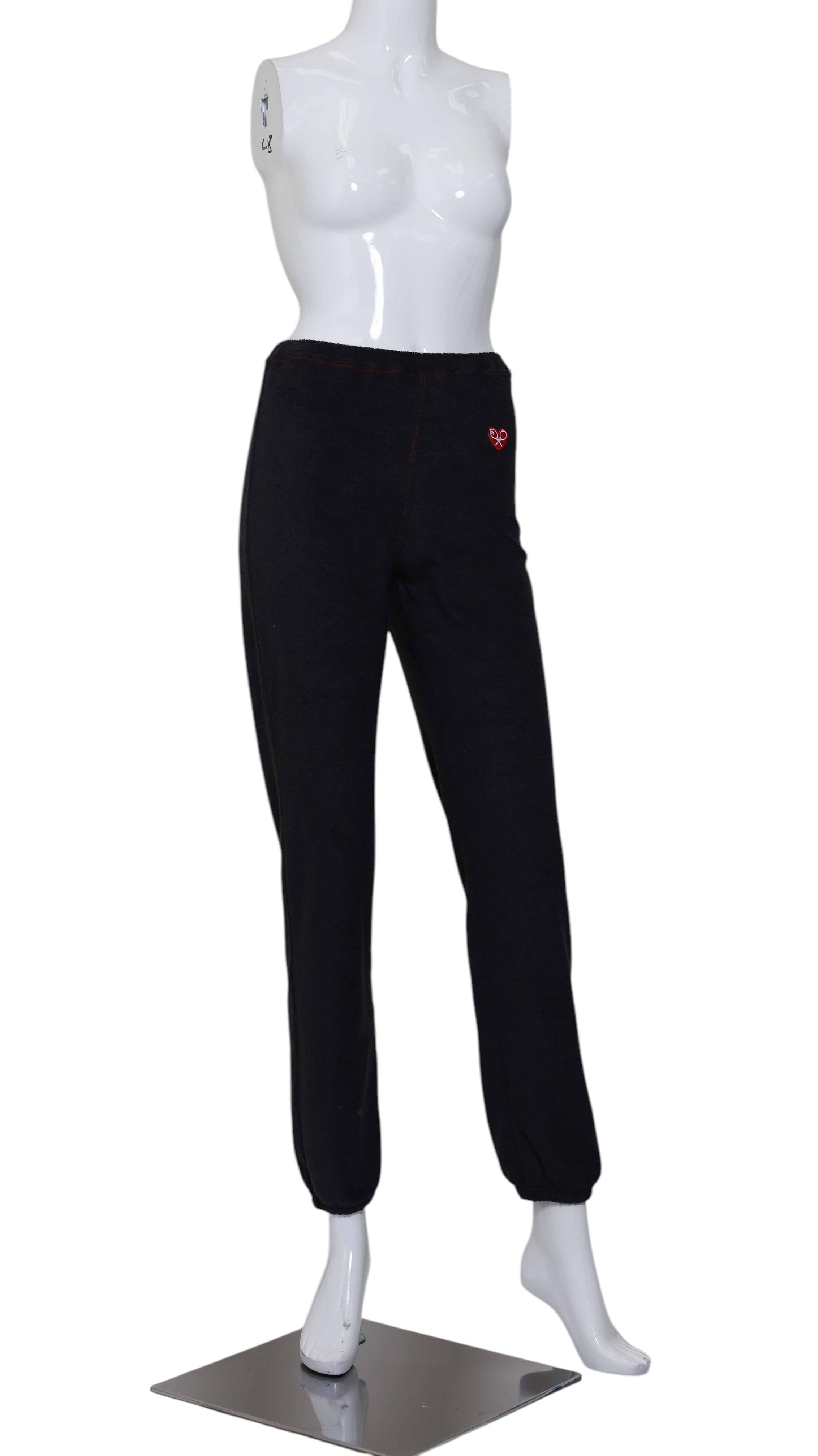 Black Velvet With Red Stitching Baggy Warm Up Pants