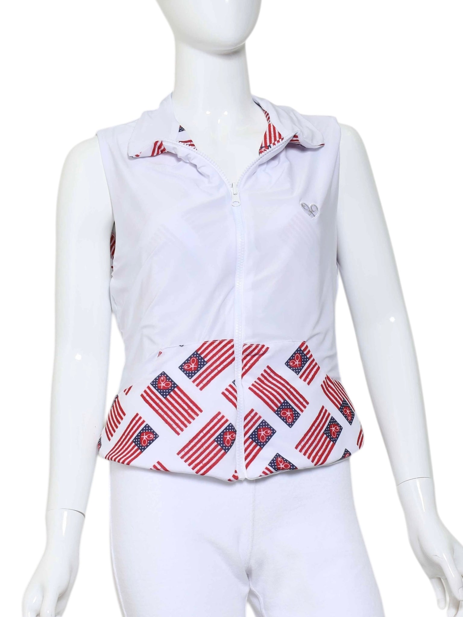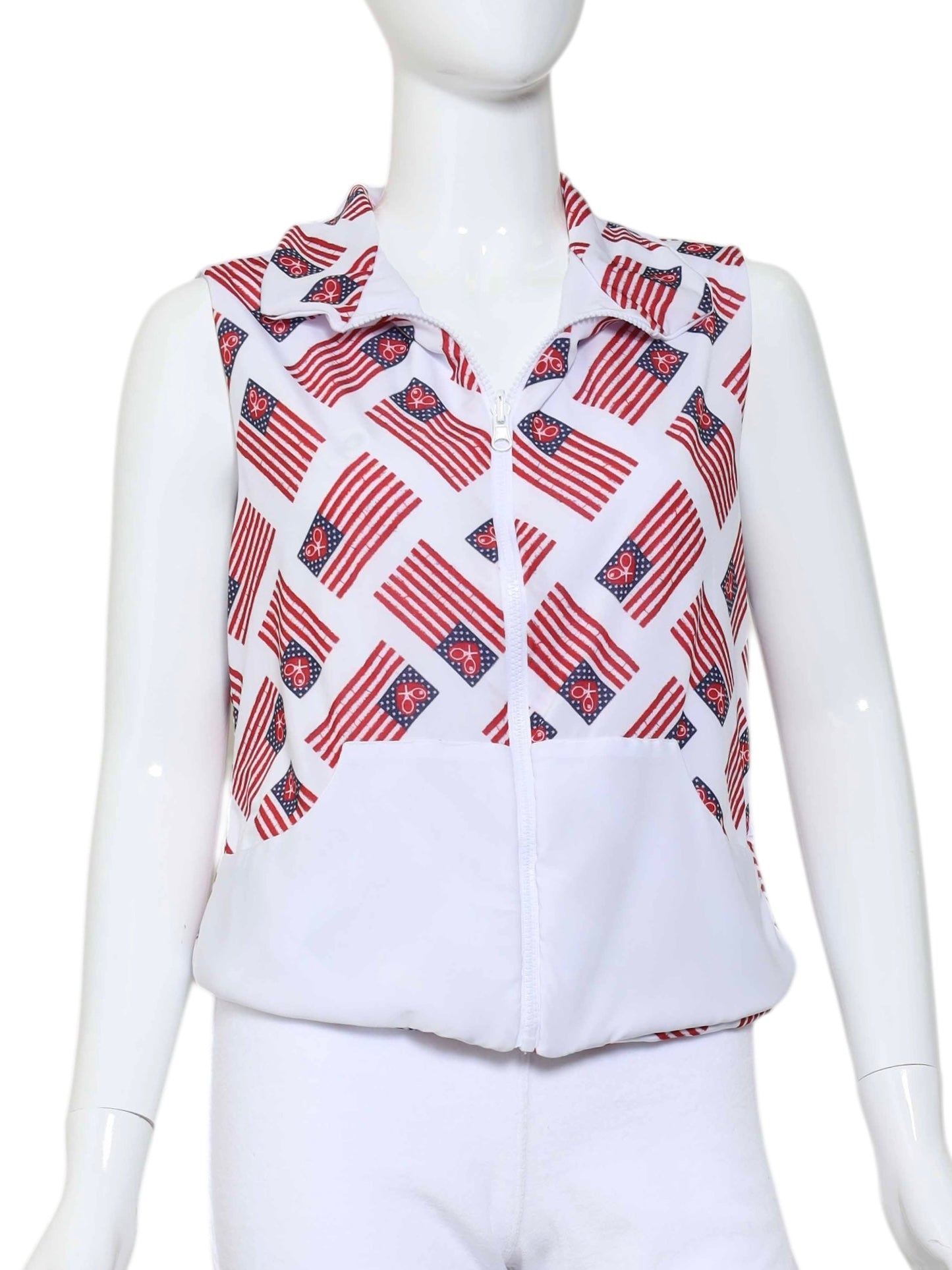 This style is in our American Flag + Hearts On White + White Reversible Vest