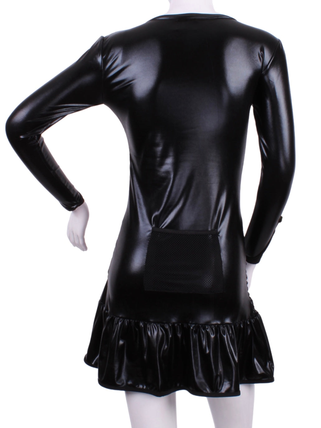 This style is in Shiny Black, with a flattering bateau neckline.