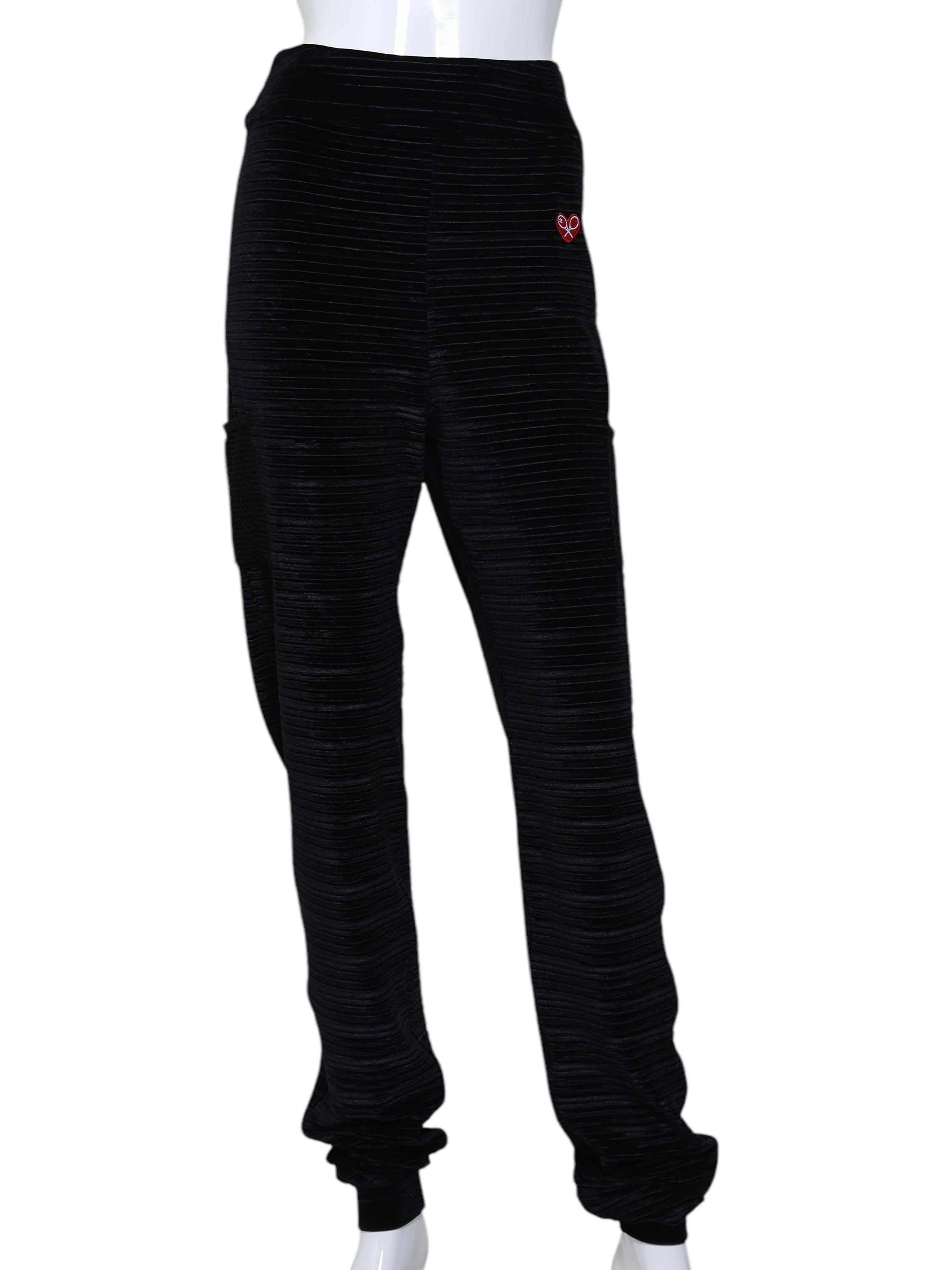 These pants are baggy and have a lose elastic on the waist allowing for comfort and the ability to pull them up or wear them low on the hips.