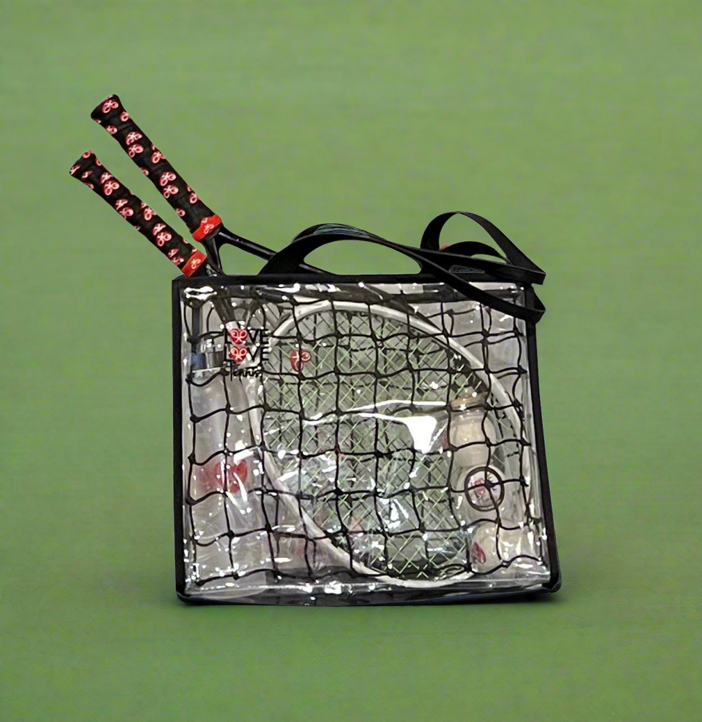 Crafted with soft and durable Vegan leather, this bag combines luxury with sustainability. The unique feature of a recycled tennis net, covered with a waterproof and clear fabric, adds a touch of elegance while ensuring durability.
