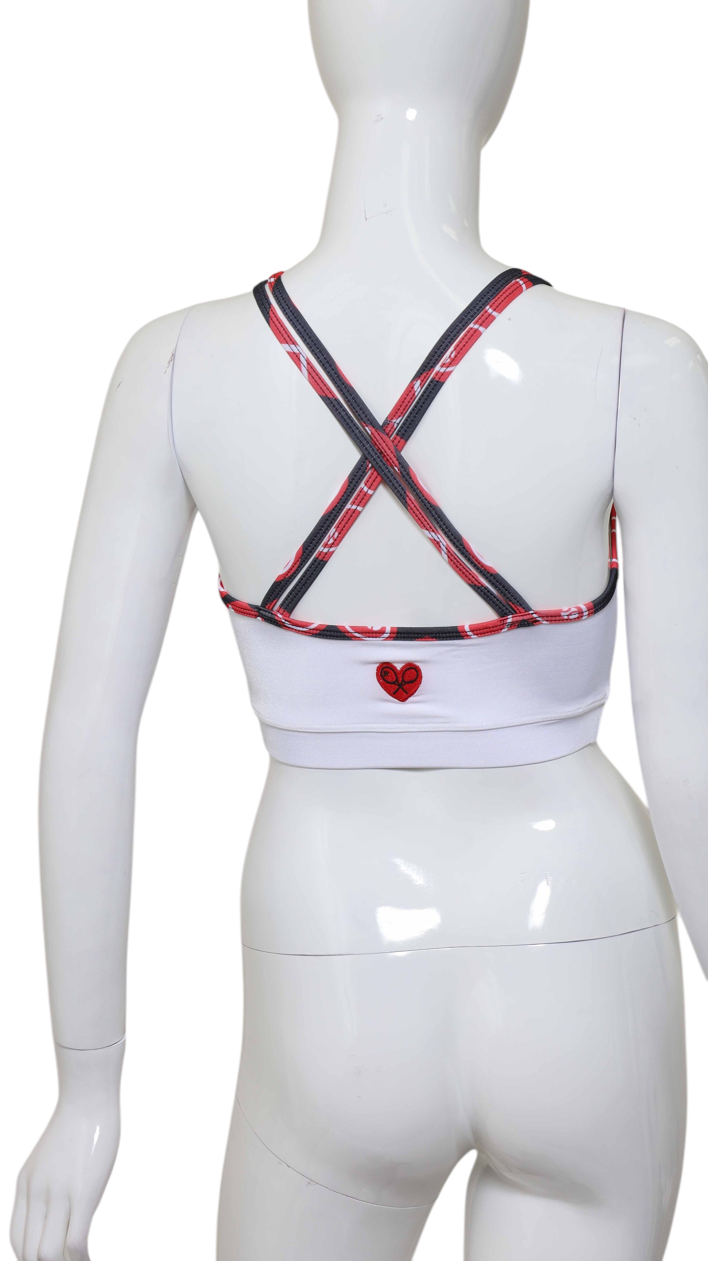 We embroidered our heart logo onto the fabric to add a little sass on the back of this bra.